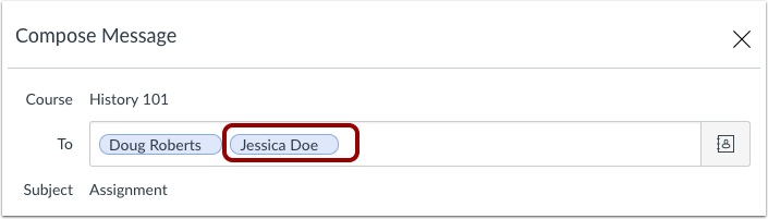 Note: When adding users to an existing conversation, you cannot change the course or the subject line.