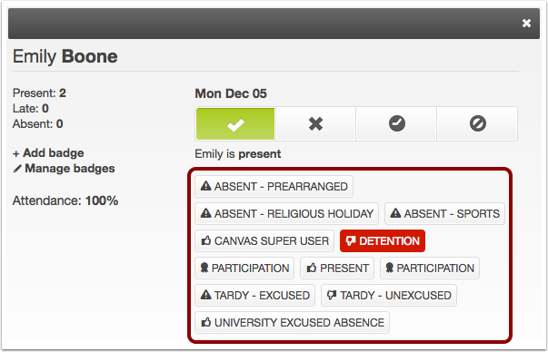 Note: When managing or editing badges, any changes made will affect the entire course, not an individual student. Additionally, you cannot manage any badges created at the account level.