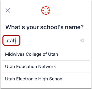 If the name of your institution does not appear in the search list, you may need to locate your Canvas account by entering a Canvas URL. If you don't know your Canvas URL, tap the Tap here for help link in the search results.