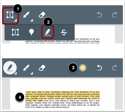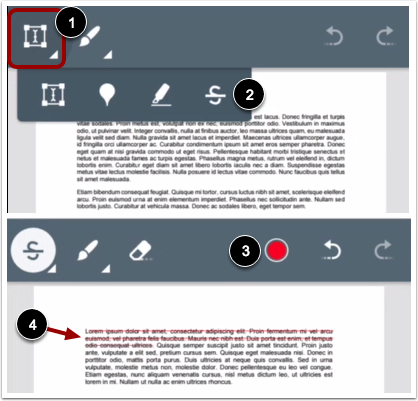 To modify the annotation, deselect the annotation icon [2]. Then tap the annotation in the document [3].